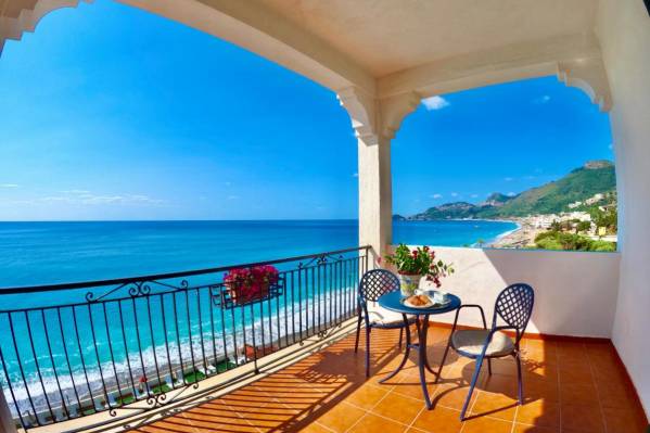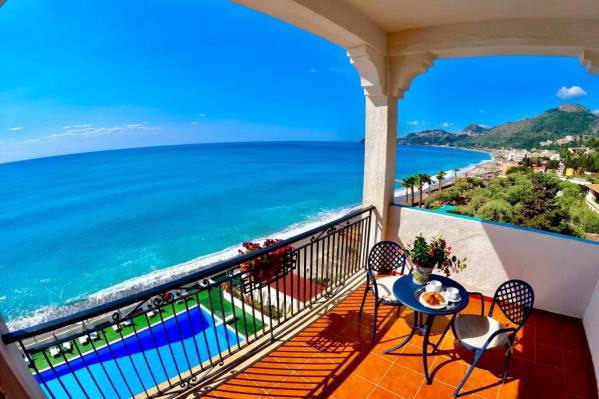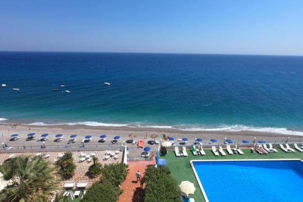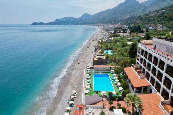 небольшой уютный отель. Расположен на берегу моря, в 10 минутах ходьбы от центра Летоянни и 5-7 минутах езды от Таормины. Очень спокойный отель, приветливый персонал и хорошая кухня. Собственный пляж, оборудование, пляжные полотенца – бесплатно. Есть меню на русском языке, русскоговорящий канал ТВ. Что очень порадовало – это бассейн с морской водой! Подходит для спокойного отдыха, семейных пар, с детьми.