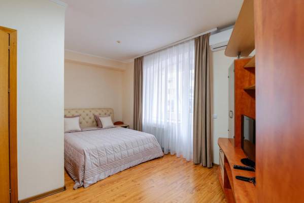 Хотелось телевизор с экраном побольше.Отель находится в центре города, но одновременно очень тихое место. Большой комфортабельный номер.