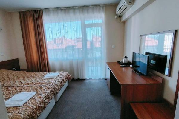 -В номере интернет работал слабо. -Удивил тот факт, что люди, буквально стоящие на улице Раковского, где располагается отель, не знали где же находится такая улица, что затруднило поиски отеля.Прекрасное месторасположение - на тихой улочке, недалеко от центральной улицы, ведущей в старый город, магазины близко и недорогие, море рядом. Очень понравился ресторан "Старый Орех", находящийся в соседнем дворе на той же улице - вкусно и недорого кормят, и сам ресторанчик очень уютный. Купаться ходила в парк на набережной на камни - чисто и никого народу. Можно подняться на лифте в гостинице "Марина Палас" - оттуда открываются прекрасные виды на город. Есть песчаные пляжи, но они слишком многолюдны. Ходила по пляжу пешком до Солнечного Берега - везде очень много народу и мало тени. Лучше идти купаться в другую сторону (в сторону Равды) Понравился и сам город в целом, и старая его часть особенно.