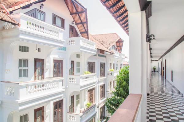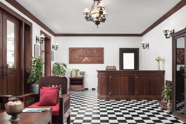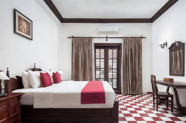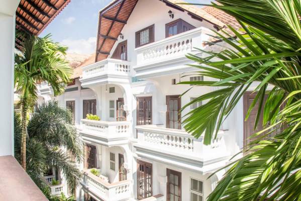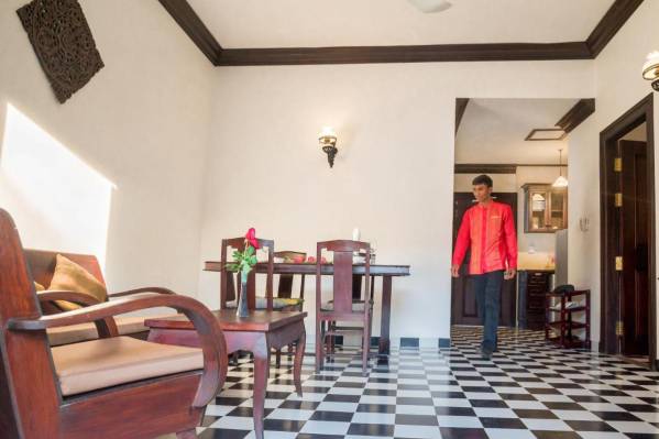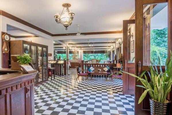 Дизайн номеровХороший отель в колониальном стиле. Громадный номер, оборудован всем что нужно, со стиральной машиной, большим холодильником, плитой. Посуды правда минимум, но нам это было не нужно. В каждой комнате кондиционер и вентилятор. Все работало исправно. Расположен на тихой улочке рядом с супермаркетом, до олд маркета 5 минут на тук-туке. Есть русский канал. Wi fi без проблем. Номер был де-люкс в основном корпусе на 2-ом этаже. Бассейн не пахнет хлоркой. В ресторане готовят хорошо.