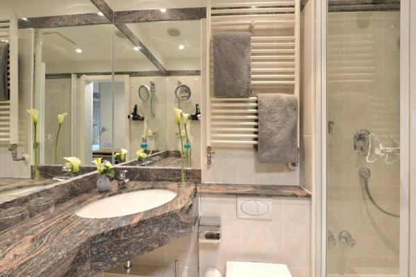 Отсутствие вытяжки в ванной. Если кто-то только что помылся, то долго туда не зайти.Просторный номер, телевизор даже в ванной был, хотя мы его не смотрели. Окно в ванной, можно свет не включать. Балкон с креслом. Все окна закрываются плотно рольставнями, в номере можно создать темноту даже солнечным днём, для нас это было осень актуально. Есть холодильник и чай, чем мы постоянно пользовались. Бесплатная парковка у отеля, но в праздники есть проблемы с местами. В пасху нам пришлось парковаться в другом месте.