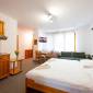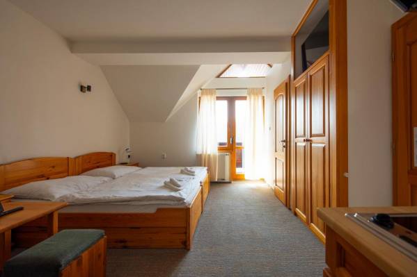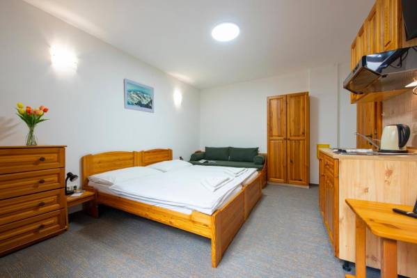 Завтрак 6 евро, работа ресторации, бильярда, тенниса только до 22.00.Хорошее месторасположение, до склона всего 500 метров. Большая площадь номера с плитой и чайником.