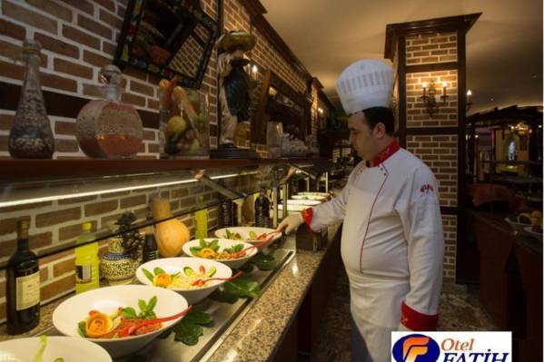 Отель Fatih Hotel расположен в 120 км от аэропорта Анталии, в 1 км от центра г.Алании, в 100 м от моря, через дорогу. Отель Fatih Hotel построен в 1986 году, реконструирован в 2007 году. Oбщая площадь территории 1800 кв.м. Одно 5-и этажное основное здание. К услугам гостей отеля Fatih Hotel - ресторан, 3 бара, конференц-зал, настольные игры, живая музыка 1 раз в неделю, крытый и открытый бассейны, детский бассейн, водная горка, водные виды спорта на пляже, где имеются душевая и кабины для переодевания, лифт, обслуживание номеров.