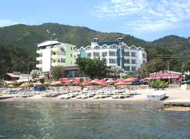 Очень далеко от моря. Платный (50 лир за 4 ночи), но не регулируемый кондиционер. Т.е. вообще не регулируемый, ключ вставил-повернул 18 градусов с завыванием - и все! - пульт просто не рабочая деталь. Номер с "картинки интернета" получили с третьей попытки. Первый номер не соответствовал нашему заказу. После оплаты нас привели в маленькую мансарду на 5-ом этаже. Два других номера были не убраны, и это в 18.30 вечера. Последний номер соответствовал информации указанной на сайте при заказе номера, но пришлось ждать пока номер уберут. Мы "подарили" отелю почти 5 часов оплаченного нами проживания в нем!. Цены в фунтах. Их странно переводят в лиры. 25 фунтов за неделю или 50 лир за 4 ночи. 50 как то плохо на 4 делиться :-). В первые дни нашего пребывания в отеле было много пьющих английских женщин определенной социальной группы. Одна из "дам" играя с сыном, кидала в бассейн уличную обувь свою и сына. Я плыву а рядом грязная чужая обувь- брр... Отсутствие в ванной мыла-геля-шампуня. Один тонкий рулон бумаги на троих человек на 4 дня. Покупали в магазине не хватило.Отличный бассейн. Не плохой обслуживающий персонал. Большая площадь номера (две комнаты, большая гостиная). Приятный вид из окна номера на сад. В апартаментах хорошая анимация для всех возрастов. Вечером накрывают столы у бассейна, постояльцы танцуют, иногда живая музыка. Все объявления на трех языках; английском, турецком, русском. Хотя за все время проживания мы были единственными из "территорий СССР". Основной контингент постояльцев отеля - англичане. Правда, в день нашего отъездом в отеле появились немцы и турки.